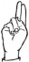 На ћирилици написано МИЛА ИВАНЕЖА састоји се из 11 слова [?]. Исписано ћириличном једноручном азбуком за глувонеме: